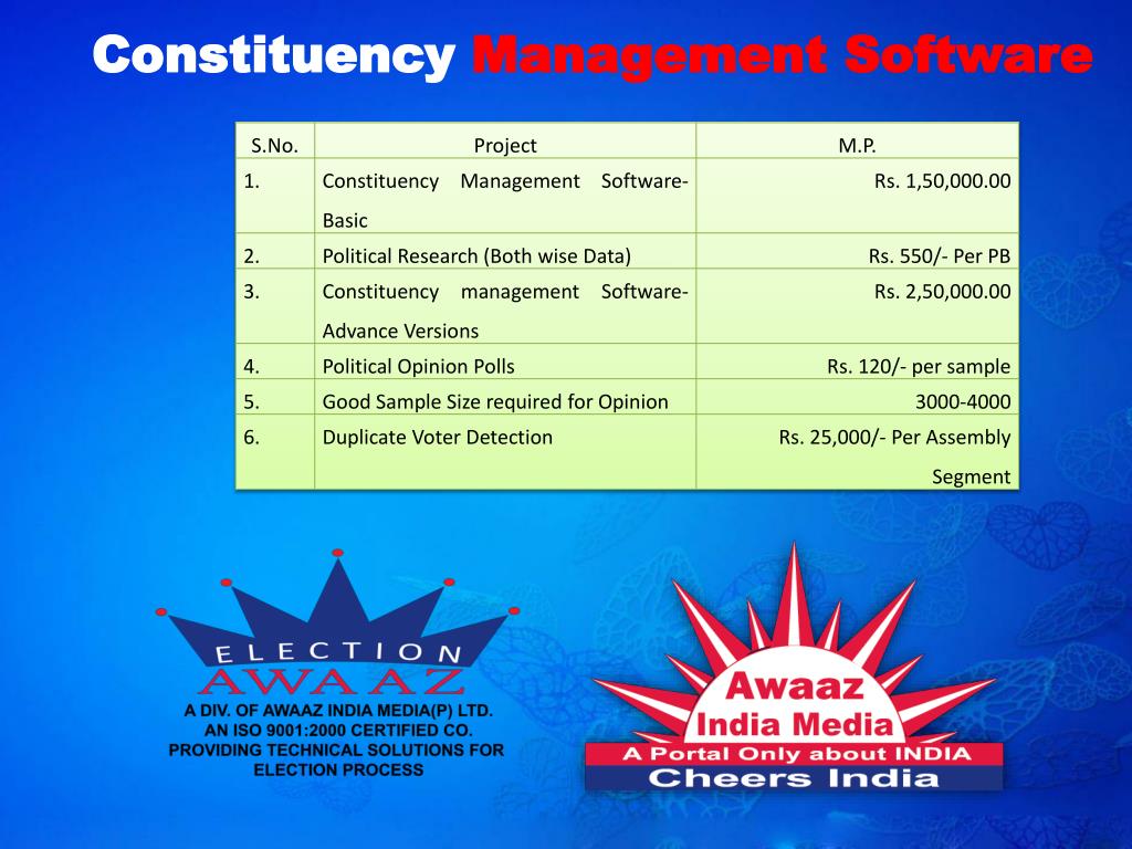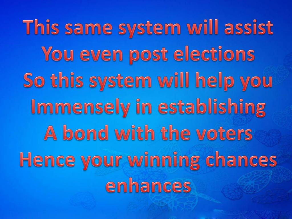 This same system will assist You even post elections So this system will help you Immensely in establishing A bond with the voters Hence your winning chances enhances