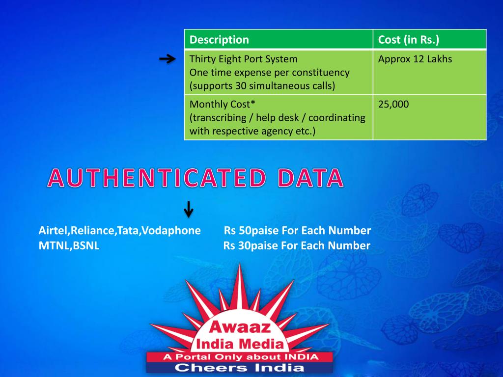How It will enhance your winning chances You will record your message on a special number just for you which will be secured by a password. You’ll put in that password and wherever you’re stationed or travelling will be able to record your message as per your ease Your message gets recorded onto the server everytime whenever you record. Automatically your new message starts playing. Your Party worker gets your message and calls on your numbers and records his complaint, message or suggestion Our call center person will listen to that message , complaint or suggestion and type it on an E-xcel sheet. And will send you an email which can be after every 3hrs. Your people just have to take out a print out