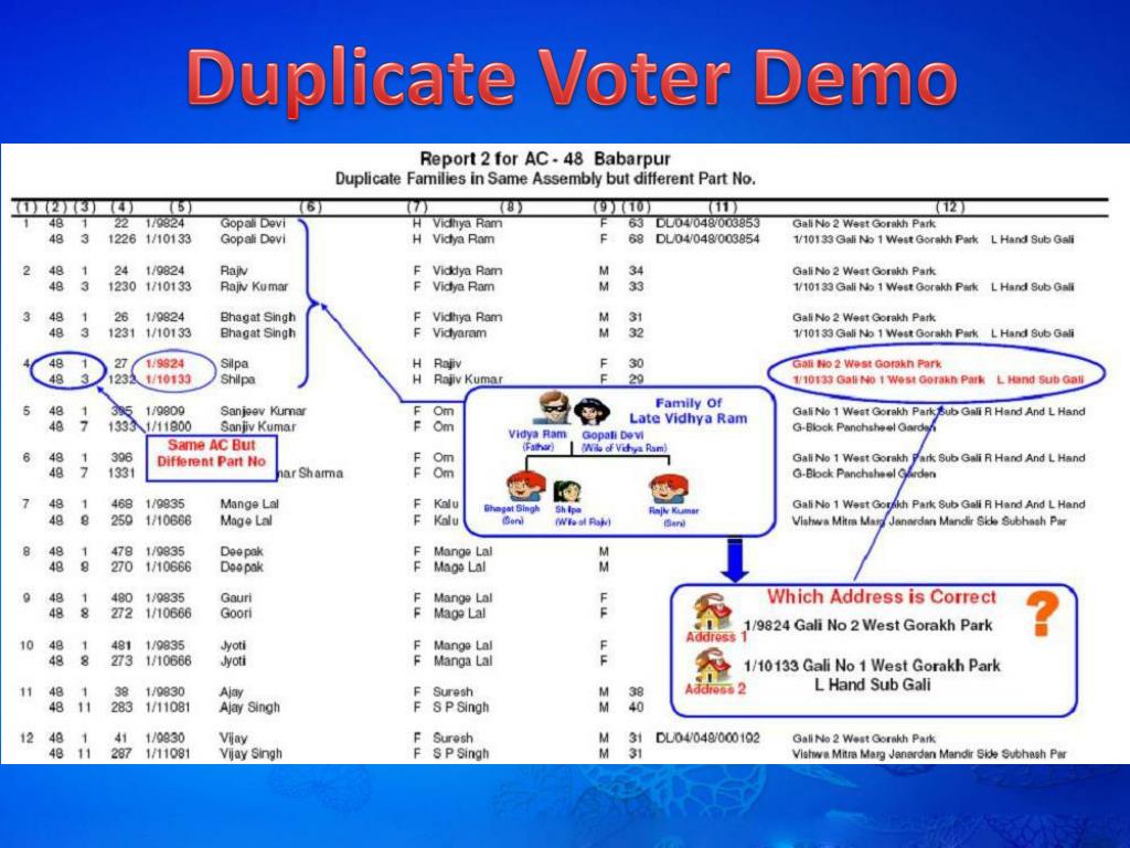 Duplicate Voter Problem What can be done • Booth Level Planning • Identify Booths where Polling Was Good but Turnout was Bad • Will Give Party an Incremental Edge Tackling the Duplicate Voter Problem • As many as 5 Lac Voters are registered at more than one place in Delhi. • Using its RSS-Cadre, BJP is able to caste some of these votes. • These can be deleting by timely detection and pursuing with Election Commission.