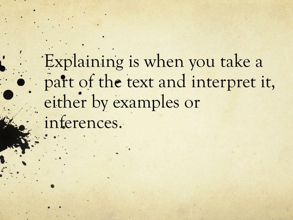 Explaining is when you take a part of the text and interpret it, either by examples or inferences.
