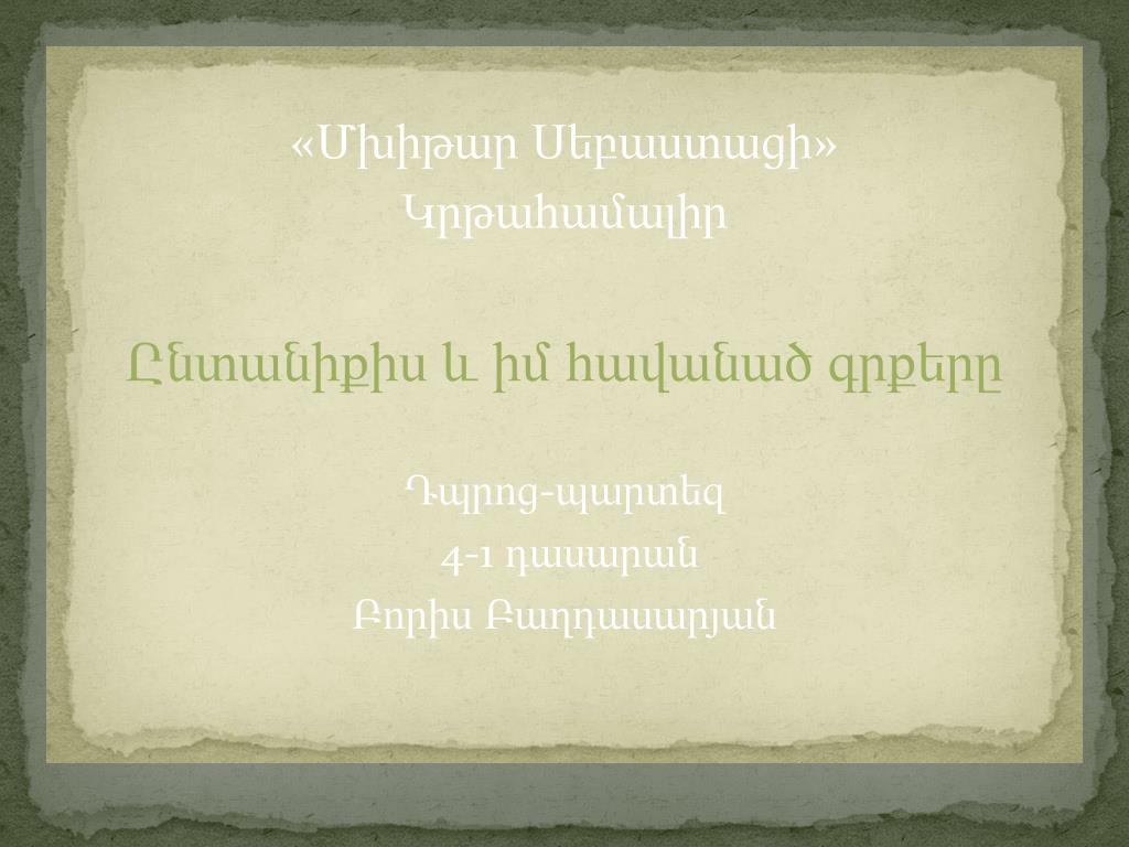 «Մխիթար Սեբաստացի» Կրթահամալիր Ընտանիքիս և իմհավանածգրքերը Դպրոց-պարտեզ 4-1 դասարան ԲորիսԲաղդասարյան