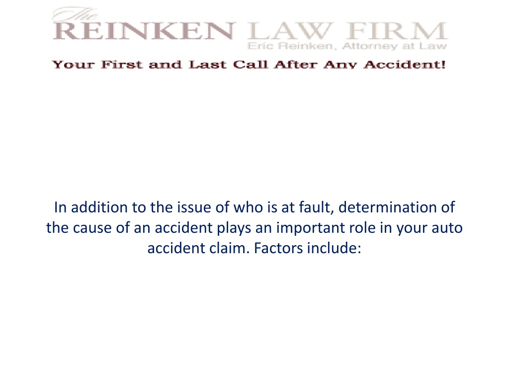 In addition to the issue of who is at fault, determination of the cause of an accident plays an important role in your auto accident claim. Factors include: