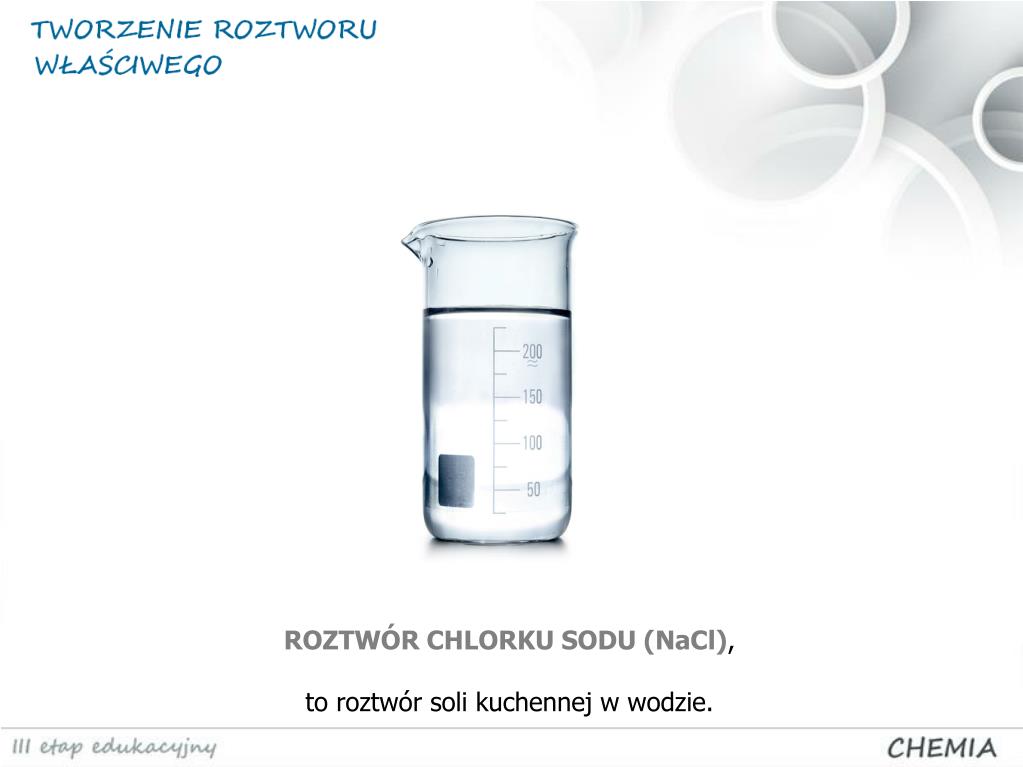 ROZTWÓR CHLORKU SODU (NaCl), to roztwór soli kuchennej w wodzie.