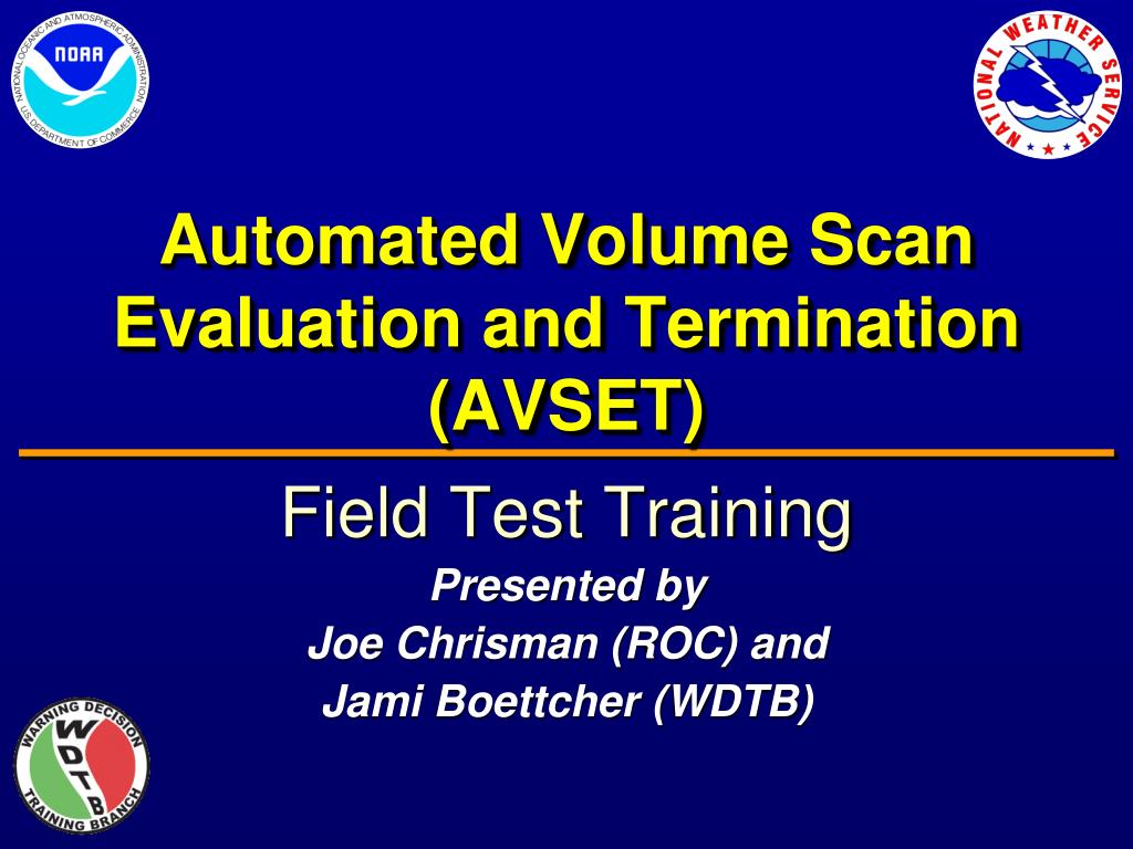 Automated Volume Scan Evaluation and Termination (AVSET) Field Test Training Presented by Joe Chrisman (ROC) and Jami Boettcher (WDTB)