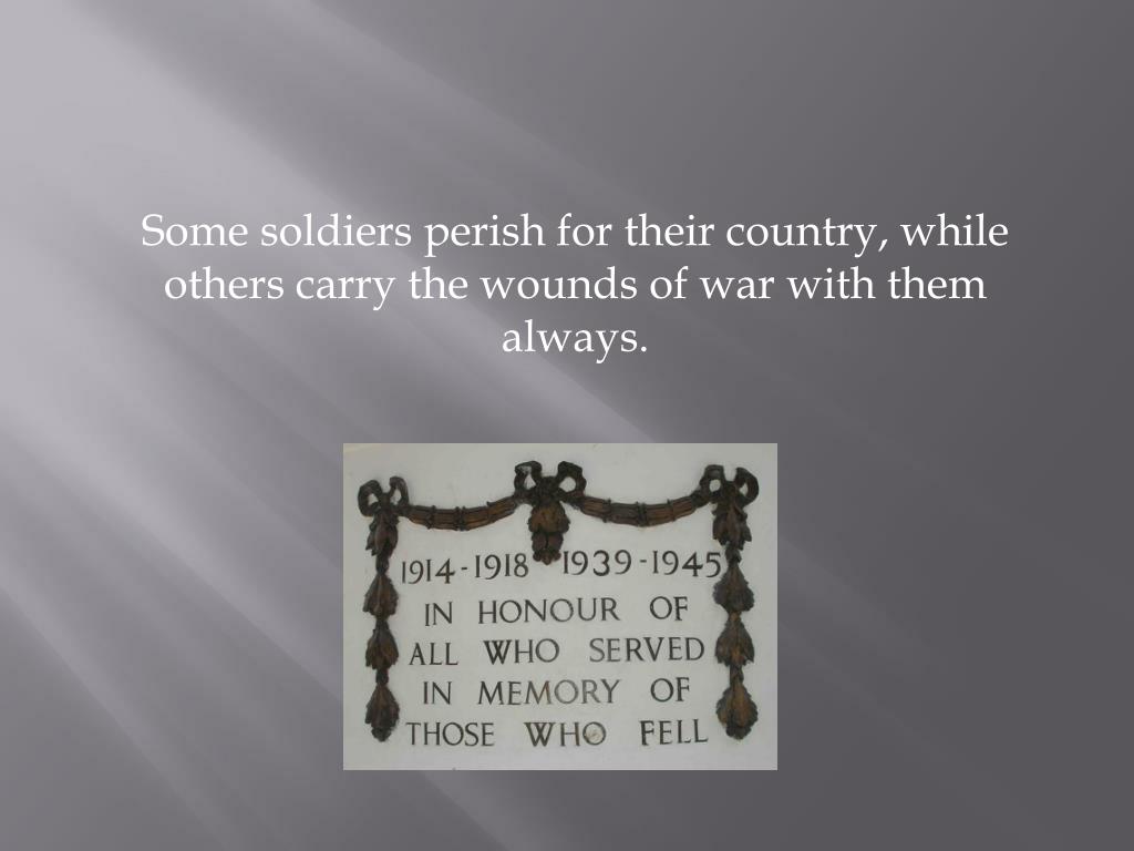 Some soldiers perish for their country, while others carry the wounds of war with them always.