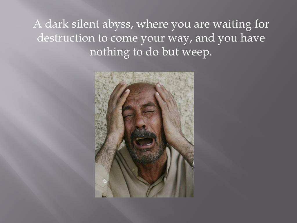 A dark silent abyss, where you are waiting for destruction to come your way, and you have nothing to do but weep.