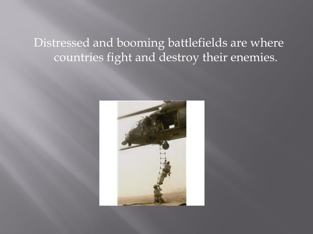 Distressed and booming battlefields are where countries fight and destroy their enemies.