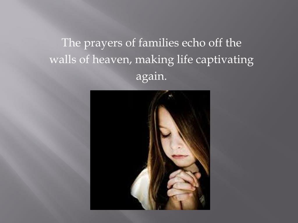 The prayers of families echo off the walls of heaven, making life captivating again.