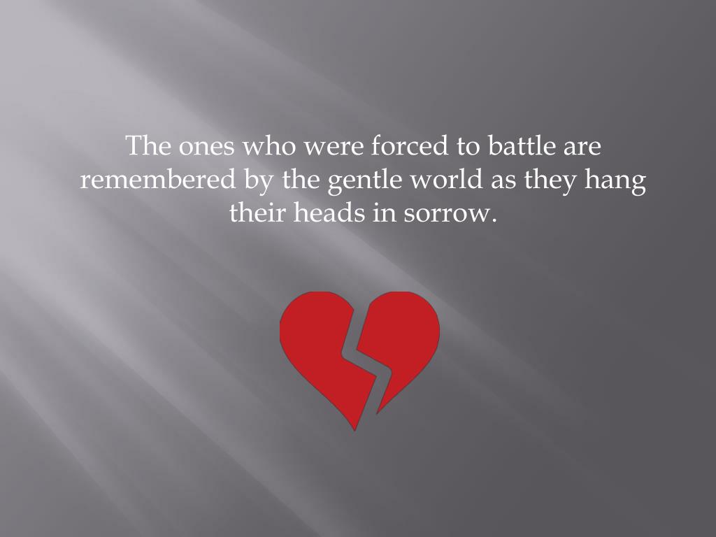 The ones who were forced to battle are remembered by the gentle world as they hang their heads in sorrow.
