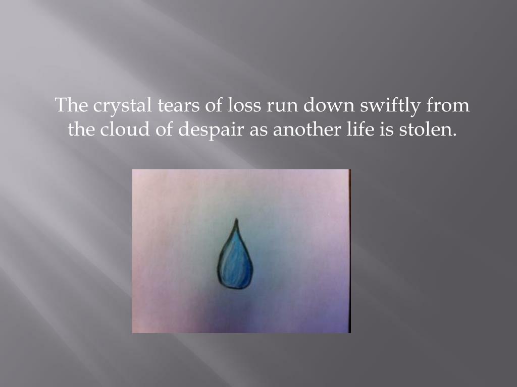 The crystal tears of loss run down swiftly from the cloud of despair as another life is stolen.