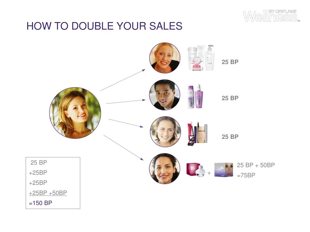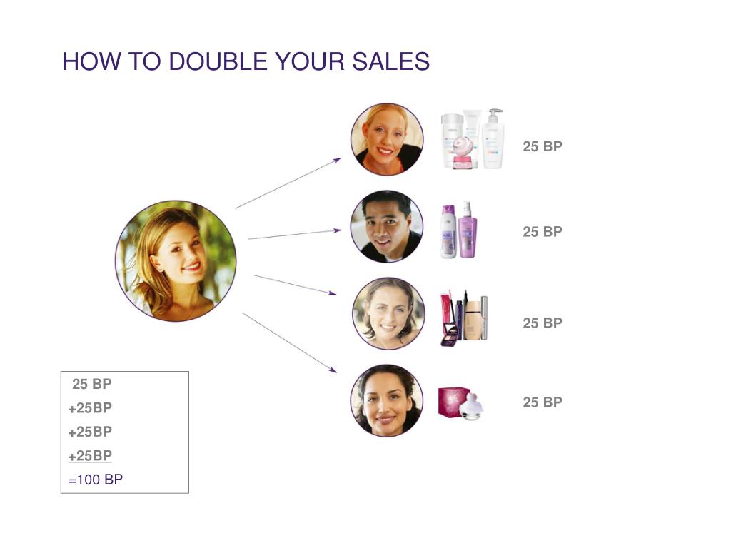 HOW TO DOUBLE YOUR SALES 25 BP 25 BP 25 BP 25 BP +25BP +25BP +25BP +50BP +50BP =200 BP! 25 BP + 50BP =75BP + 50BP