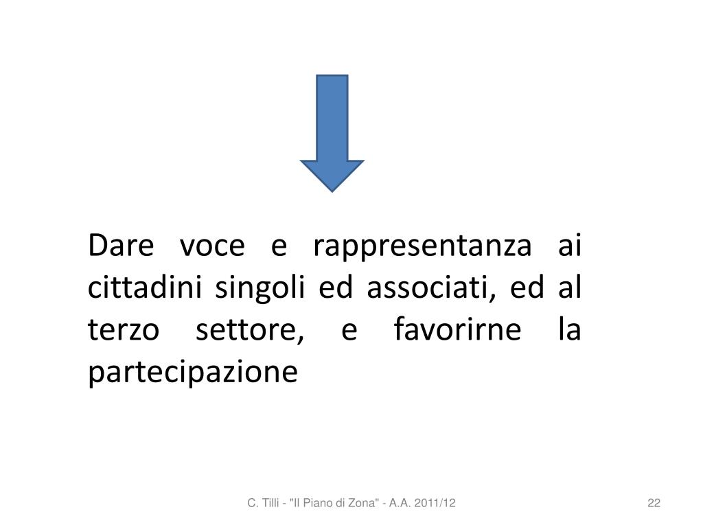 Dare voce e rappresentanza ai cittadini singoli ed associati, ed al terzo settore, e favorirne la partecipazione C. Tilli - "Il Piano di Zona" - A.A. 2011/12