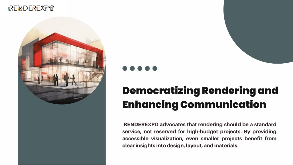 6. Democratizing Rendering and Enhancing Communication RENDEREXPO advocates that rendering should be a standard service, not reserved for high-budget projects. By providing accessible visualization, even smaller projects benefit from clear insights into design, layout, and materials.