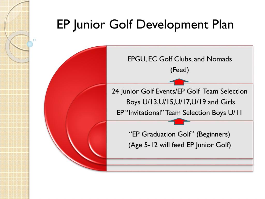 EP Junior Golf Structure 2013/2014 Season. EP Junior Golf Development Plan. Contact Details. EP Junior Golf Chairman: Alwyn Griebenow Cell: 0825706084 E-mail: griebenow@yebo.co.za Graduation Golf: Wayne Berry Cell: 0822652501 E-mail: wayneberry@telkomsa.net. Thanks .