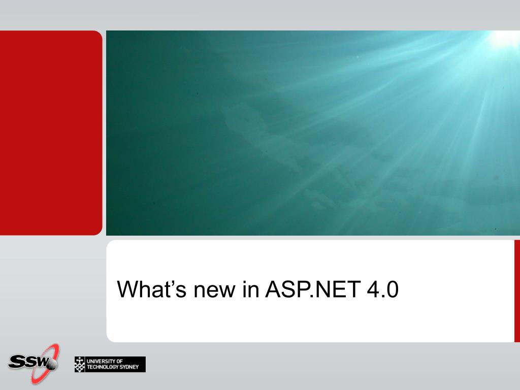 Agenda • Client Script Handlers • XML Databinding • URL Rewriting/Mapping for Vanity Urls • ASP.NET 4 • SSW Rules to better…