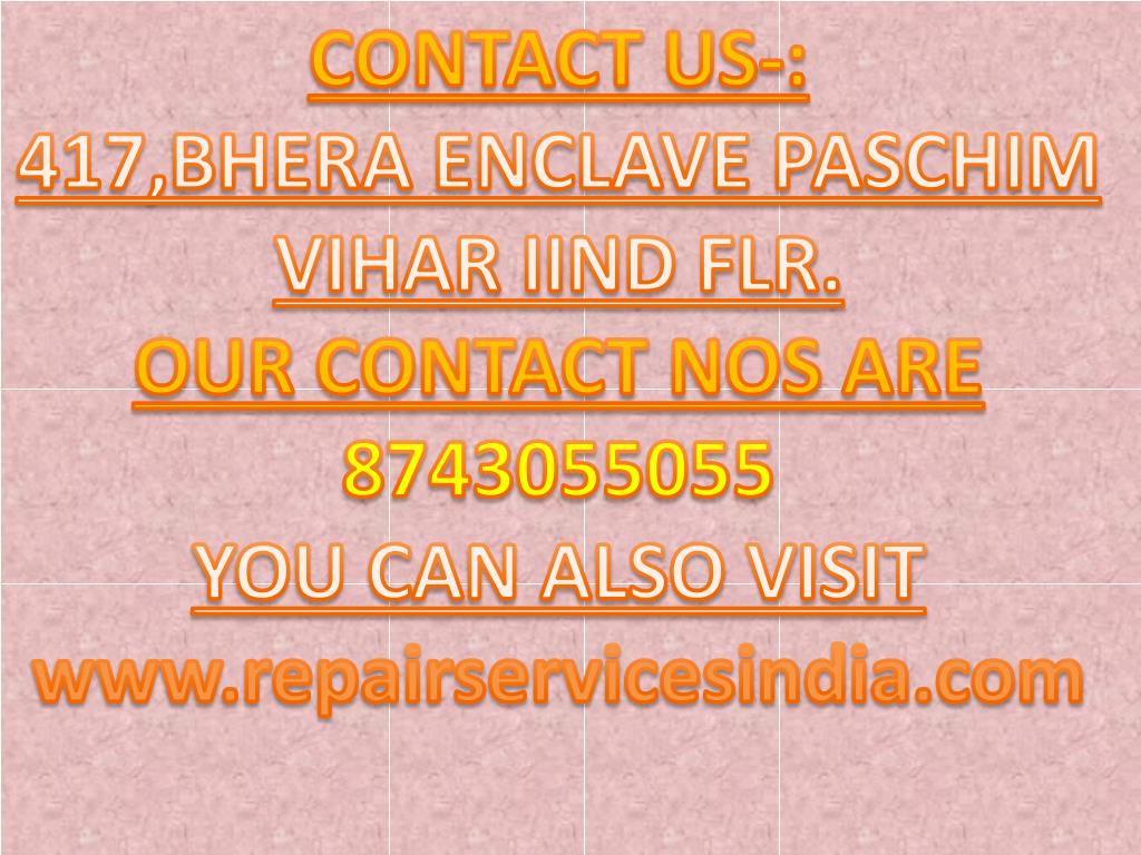 CONTACT US-: 417,BHERA ENCLAVE PASCHIM VIHAR IIND FLR. OUR CONTACT NOS ARE 8743055055 YOU CAN ALSO VISIT www.repairservicesindia.com