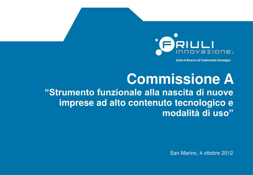 Commissione A “Strumento funzionale alla nascita di nuove imprese ad alto contenuto tecnologico e modalità di uso” San Marino, 4 ottobre 2012