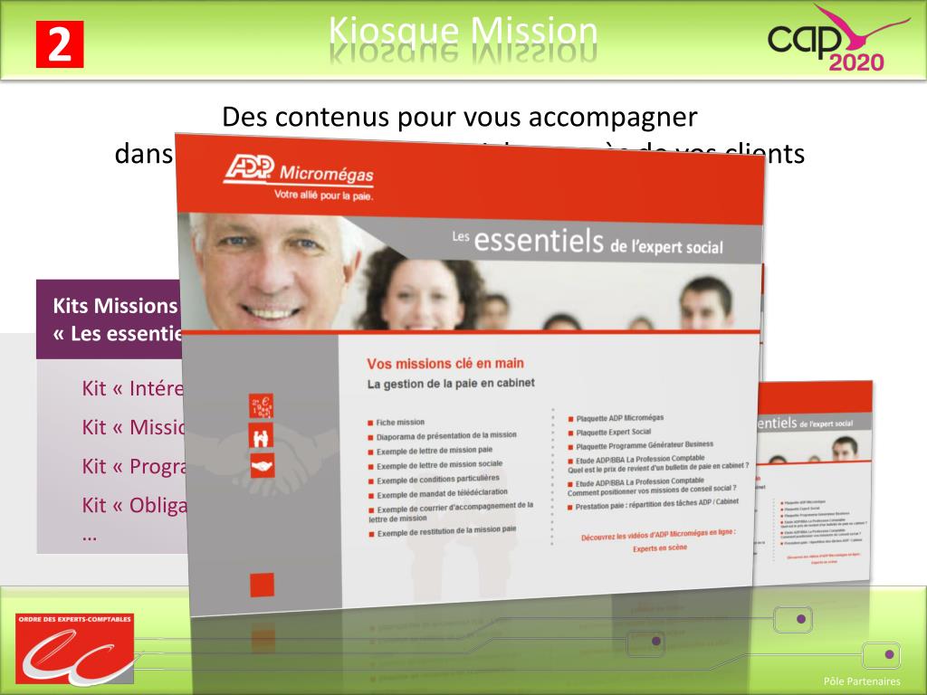 Des contenus pour vous accompagner dans la vente de missions sociales auprès de vos clients Kits Missions Sociales prêts à l’emploi « Les essentiels de l’expert social » Kit « Intéressement » Kit « Mission Paie » Kit « Programme Générateur Business » Kit « Obligation de Conseil » …