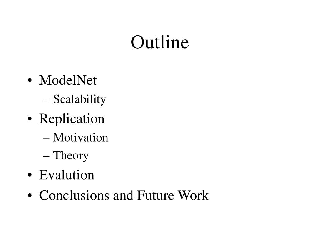 Outline • ModelNet • Scalability • Replication • Motivation • Theory • Evalution • Conclusions and Future Work