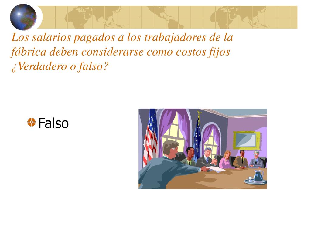 Los salarios pagados a los trabajadores de la fábrica deben considerarse como costos fijos ¿Verdadero o falso? • Falso