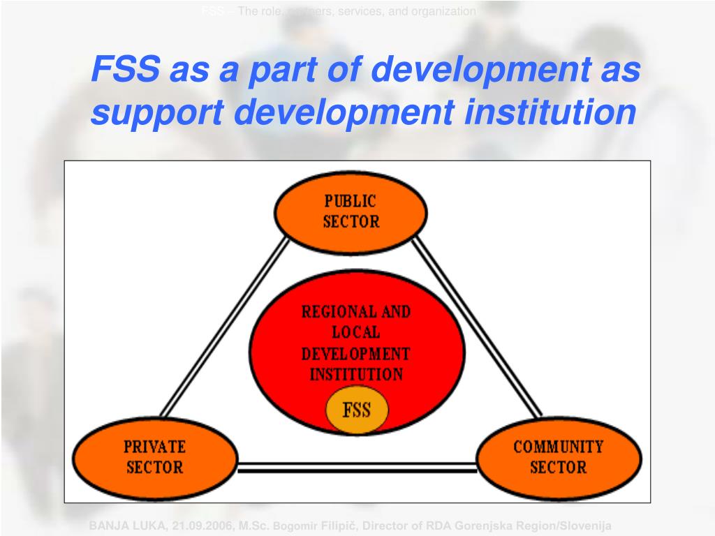For developers Region is an Unit with critical mass of human resources, economic resources (financial resources, companies, capital, institutions), natural resources, social resources and problems that should be solved. REGIONALLY ORIENTED FSS