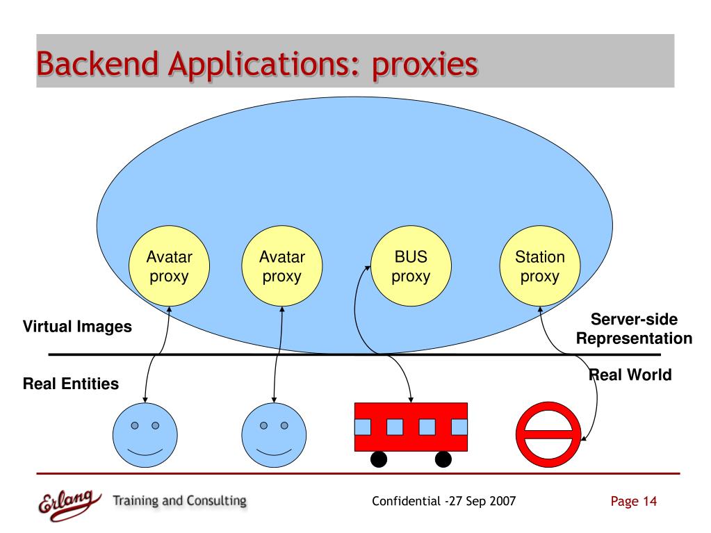 Backend Applications: proxies Avatar proxy Avatar proxy BUS proxy Station proxy Server-side Representation Virtual Images Real World Real Entities
