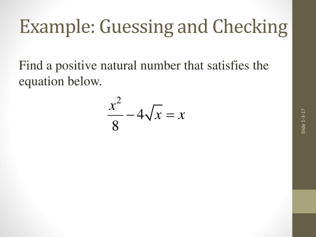 Example: Guessing and Checking Find a positive natural number that satisfies the equation below.