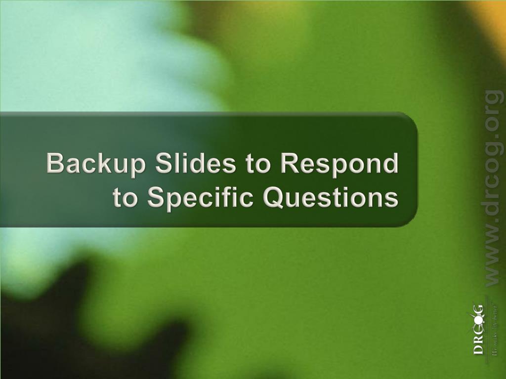 Data Available • Traffic Counts • Transit Ridership Counts • 2008 Transit On-Board Survey • 2010 Front Range Travel Counts Household Survey • 2012 Free Mall Ride Survey • Ongoing Transit Satisfaction Surveys