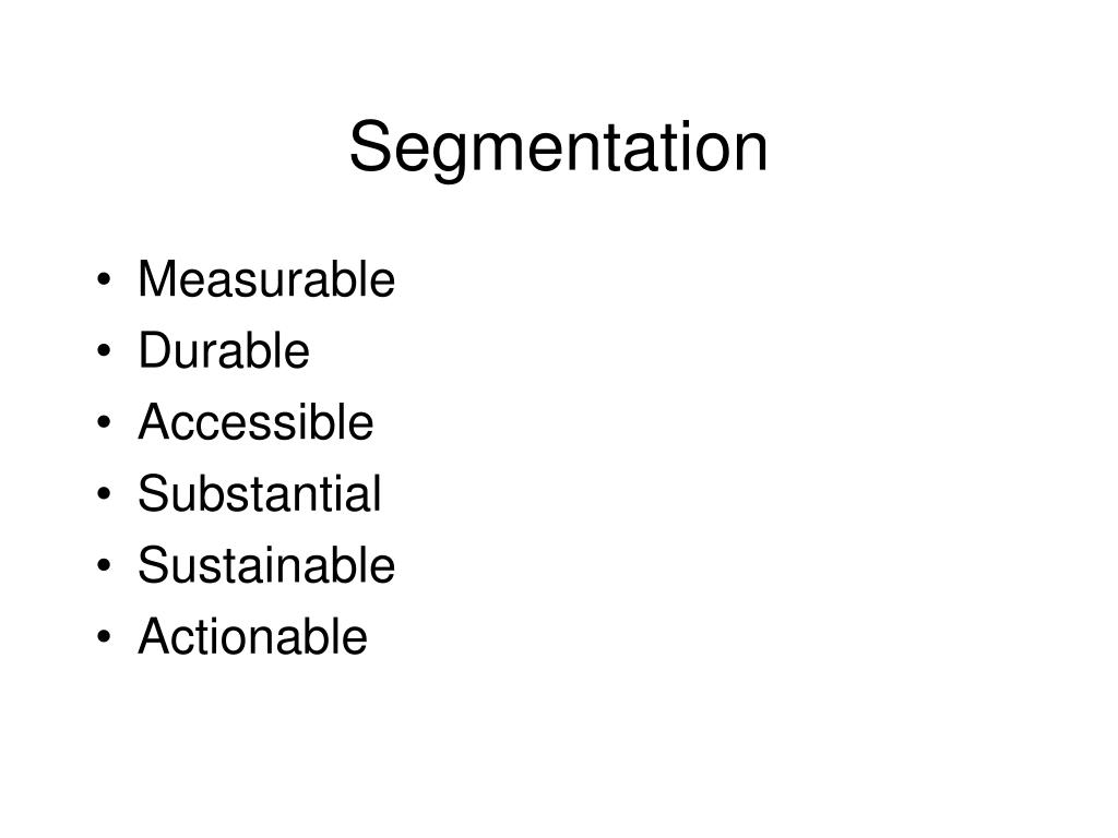 Segmentation • Measurable • Durable • Accessible • Substantial • Sustainable • Actionable