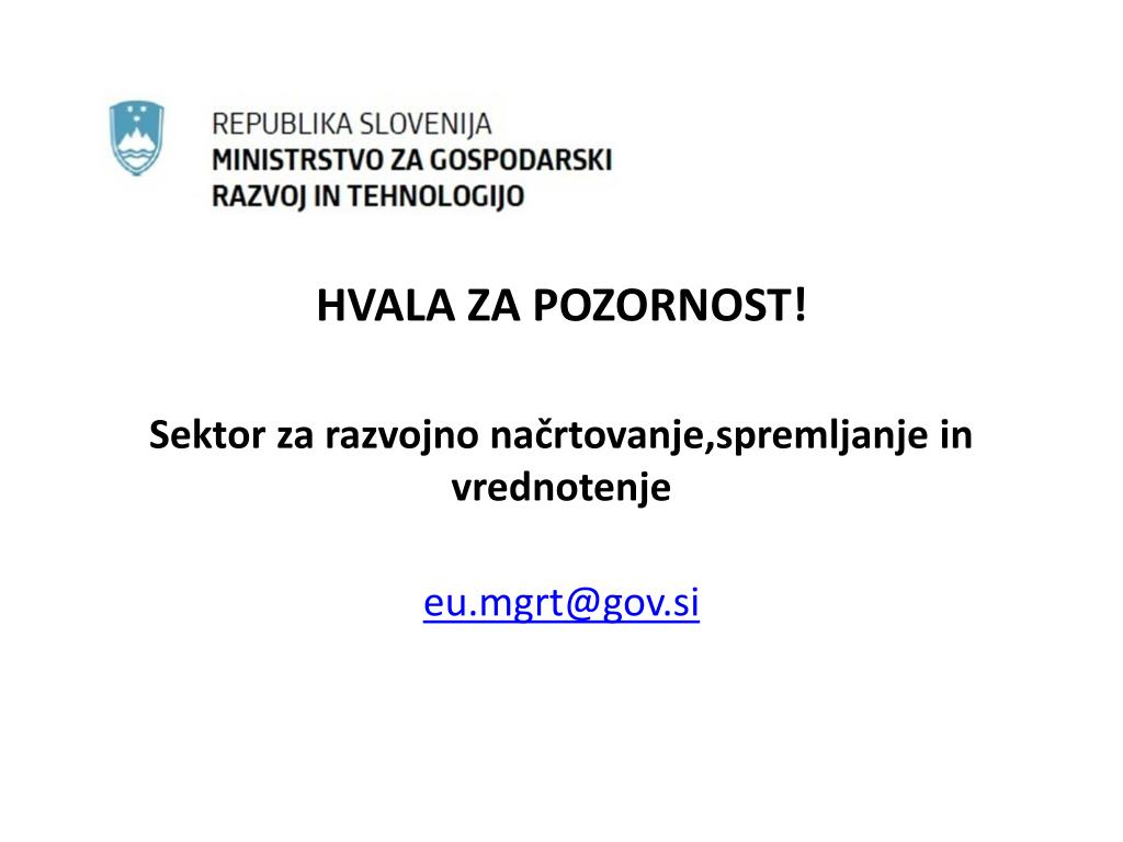 HVALA ZA POZORNOST! Sektor za razvojno načrtovanje,spremljanje in vrednotenje eu.mgrt@gov.si