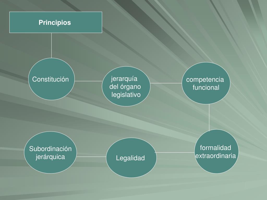 Principios Constitución competencia funcional jerarquía del órgano legislativo formalidad extraordinaria Subordinación jerárquica Legalidad
