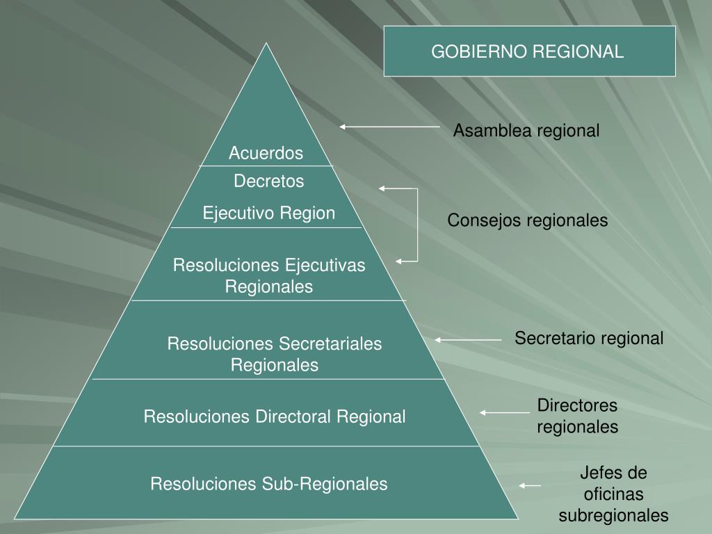 Acuerdos Decretos Ejecutivo Region Resoluciones Ejecutivas Regionales Resoluciones Secretariales Regionales Resoluciones Directoral Regional Resoluciones Sub-Regionales GOBIERNO REGIONAL Asamblea regional Consejos regionales Secretario regional Directores regionales Jefes de oficinas subregionales