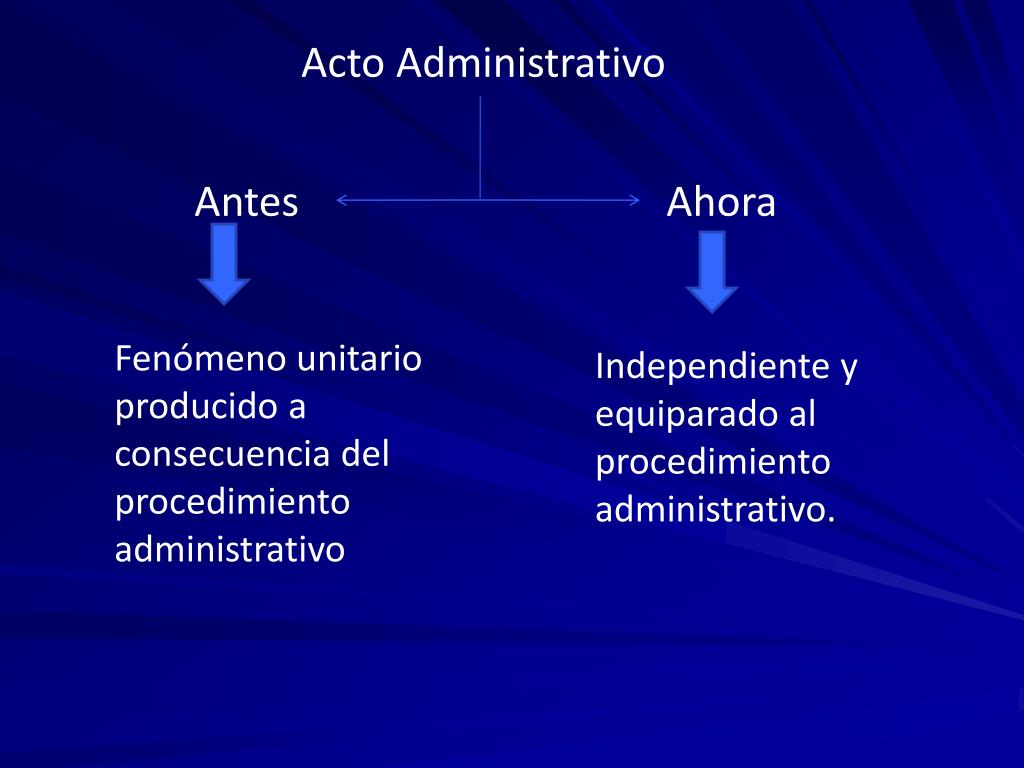 Acto Administrativo Antes Ahora Fenómeno unitario producido a consecuencia del procedimiento administrativo Independiente y equiparado al procedimiento administrativo.