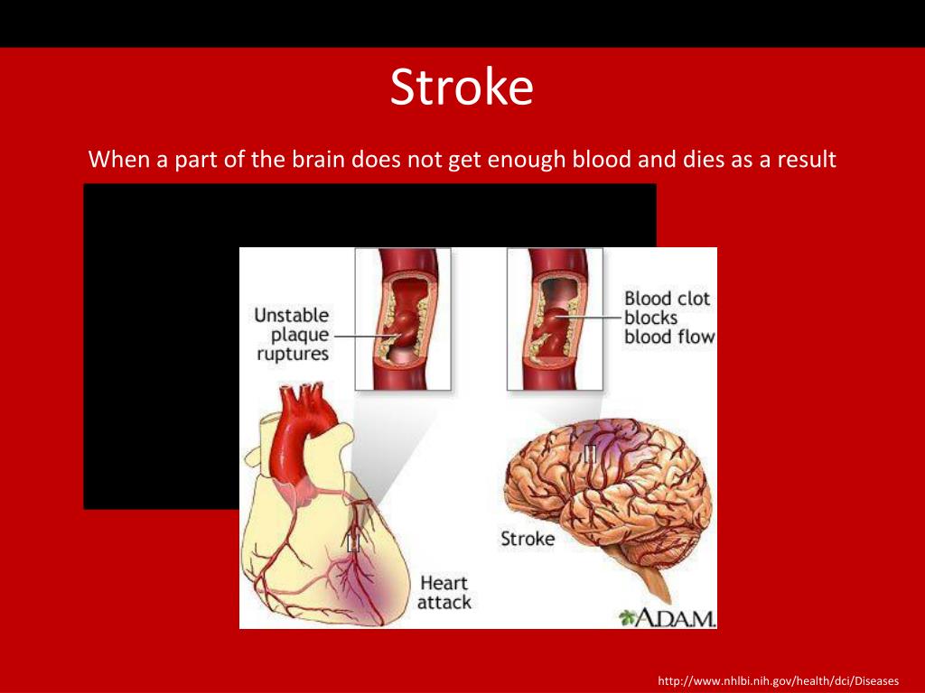 Stroke When a part of the brain does not get enough blood and dies as a result http://www.nhlbi.nih.gov/health/dci/Diseases