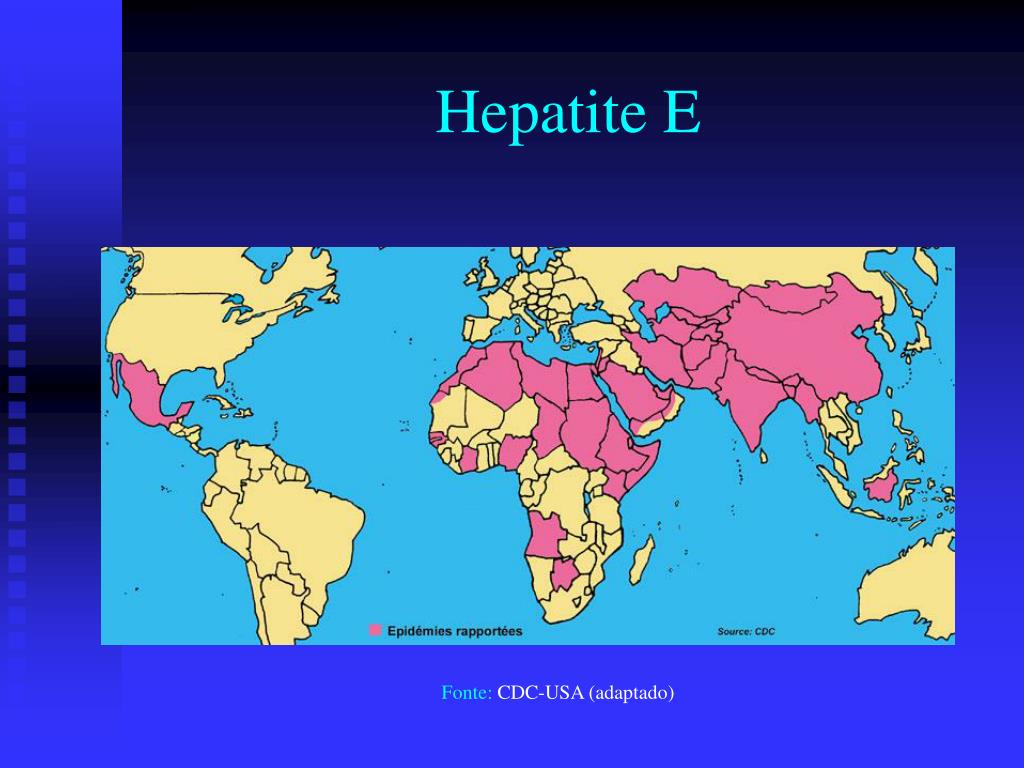 Hepatite E • Vírus: HEV (RNA) • Transmissão fecal-oral • Predomina em adultos • Auto-limitada • Não cronifica • Alta letalidade em gestantes (20%) • Baixa prevalência no Brasil