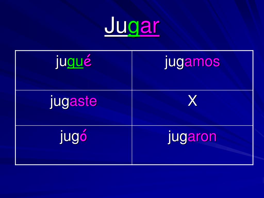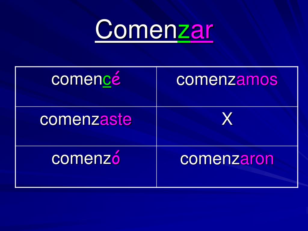 Car, Gar, Zar Irregulares • Change takes place in the Yo form only • The following changes take place: Car changes to qué Gar changes to gué Zar changes to cé • The following verbs are irregular in the Preterite Form: