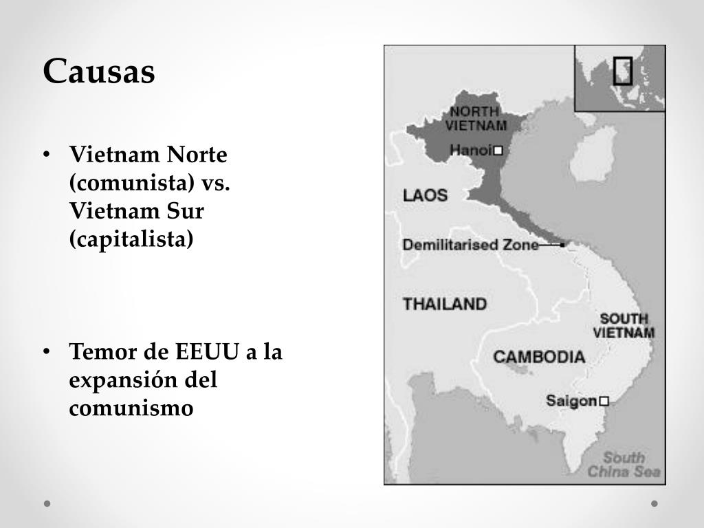 Causas • Vietnam Norte (comunista) vs. Vietnam Sur (capitalista) • Temor de EEUU a la expansión del comunismo