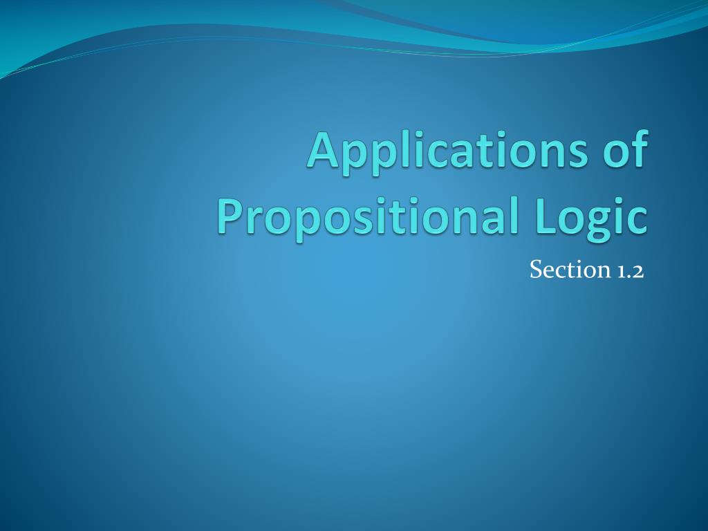 Applications of Propositional Logic: Summary • Translating English to Propositional Logic • System Specifications • Boolean Searching • Logic Puzzles • Logic Circuits