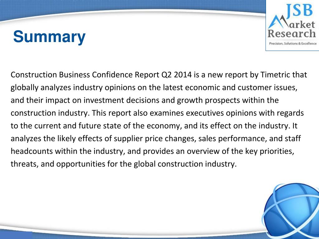 p Construction Business Confidence Report Q2 2014 To buy this Report Visit http://www.jsbmarketresearch.com