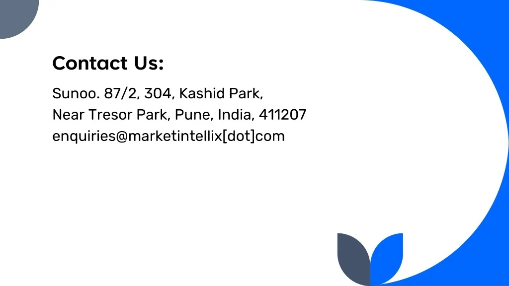 Contact Us: Sunoo. 87/2, 304, Kashid Park, Near Tresor Park, Pune, India, 411207 enquiries@marketintellix[dot]com
