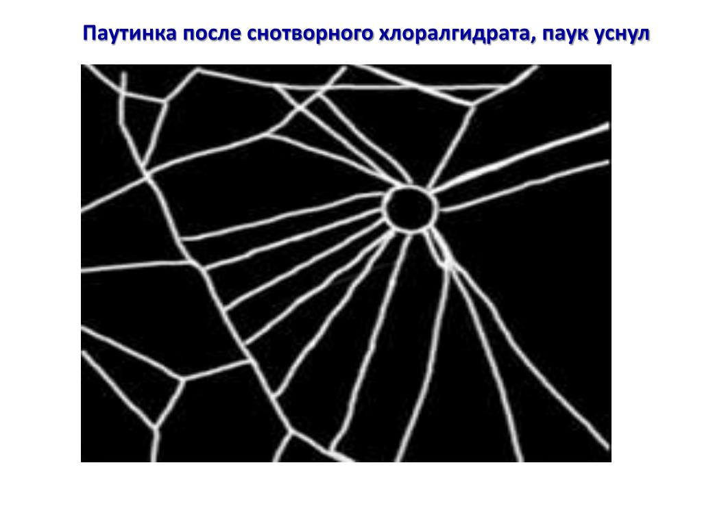 Паутинка после снотворного хлоралгидрата, паук уснул