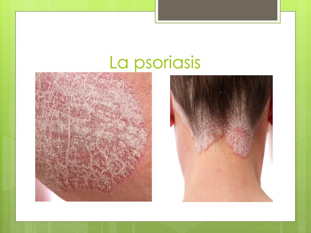 La psoriasis Síntomas: • Infecciones • Estrés • Piel reseca • Ciertas medicinas Tratamientos: • cremas, medicinas y fototerapia.