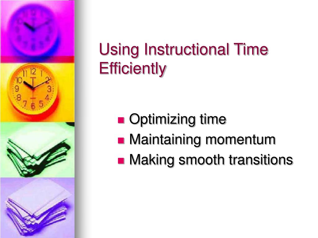 Using Instructional Time Efficiently • Optimizing time • Maintaining momentum • Making smooth transitions
