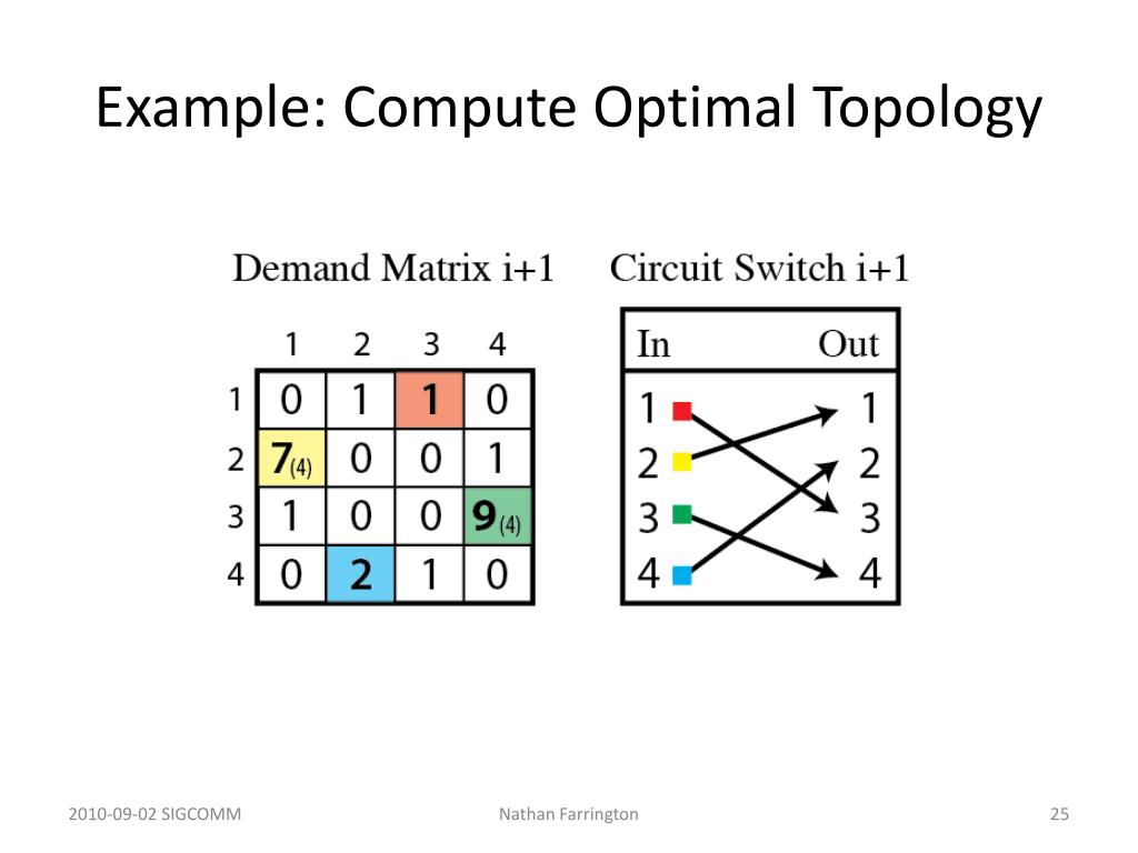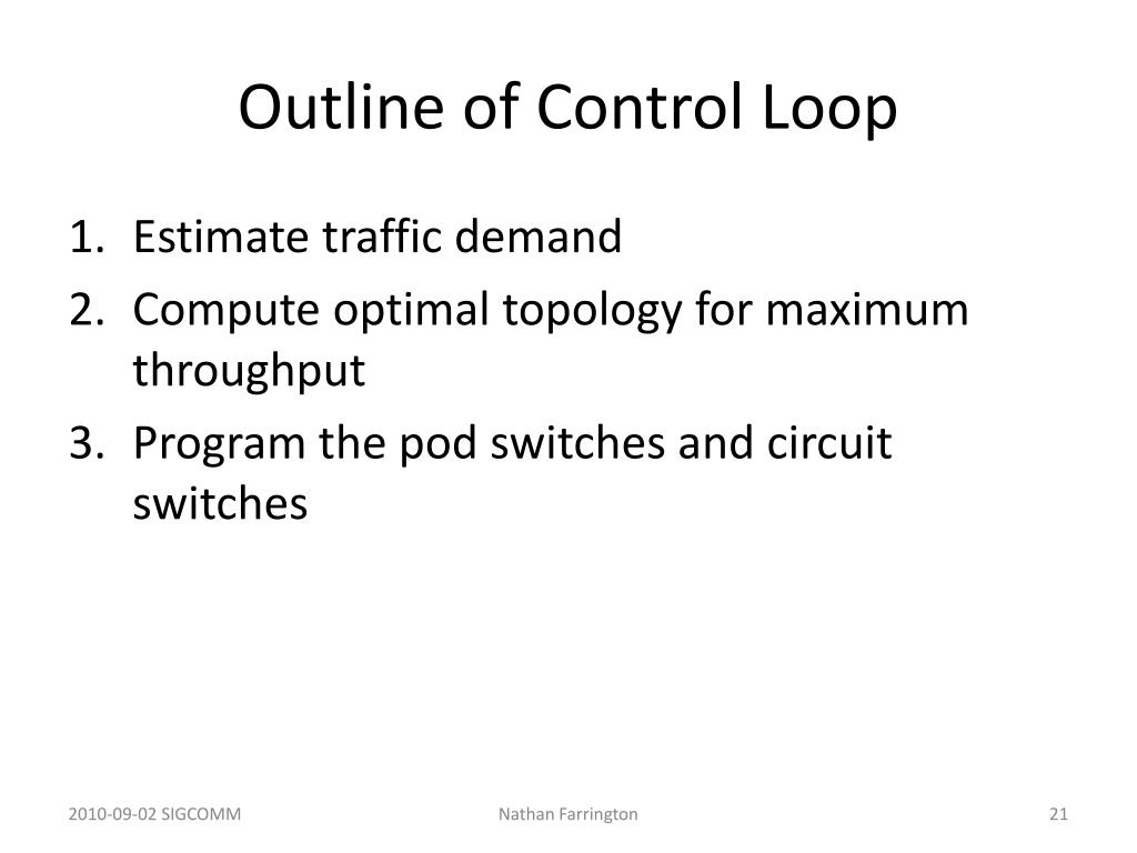 Outline of Control Loop • Estimate traffic demand • Compute optimal topology for maximum throughput • Program the pod switches and circuit switches Nathan Farrington