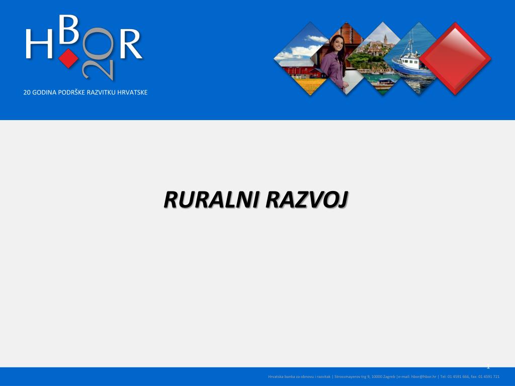 RURALNI RAZVOJ. Općenito o HBOR-u Hrvatska banka za obnovu i razvitak osnovana je 1992. godine Osnivač i 100% vlasnik banke je Republika Hrvatska Temeljni kapital HBOR-a iznosi 7, 7 milijardi kuna Suradnja sa međunarodnim financijskim institucijama:EIB, IBRD, KfW , CEB, itd.