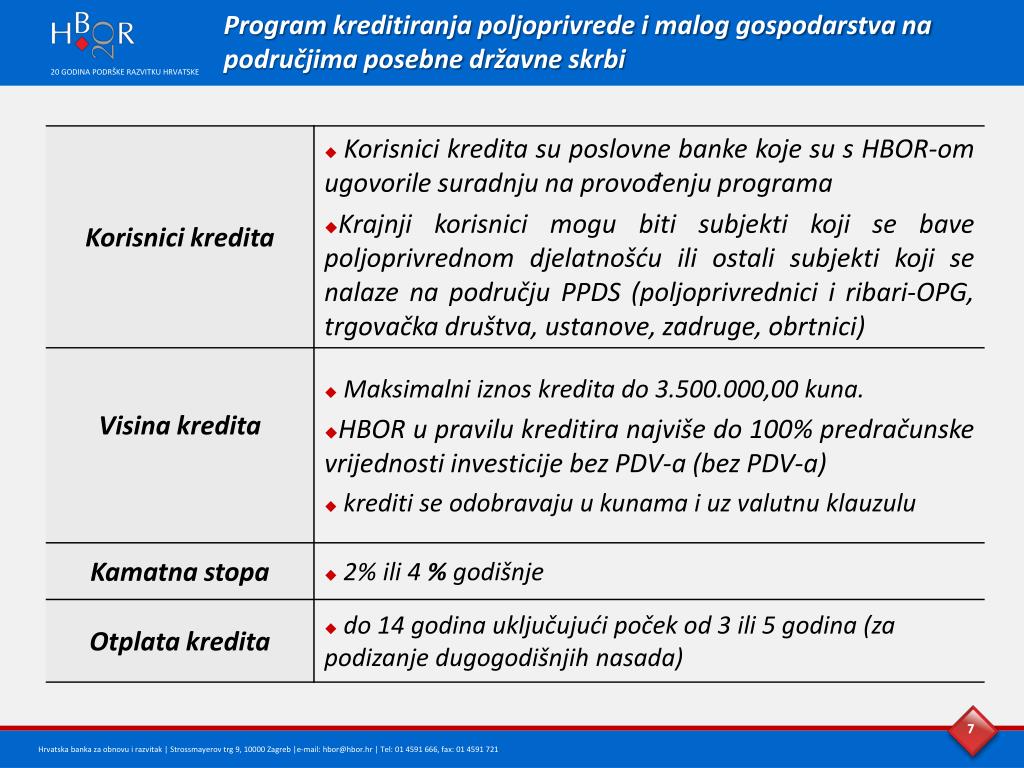 Program kreditiranja poljoprivrede i malog gospodarstva na područjima posebne državne skrbi 7