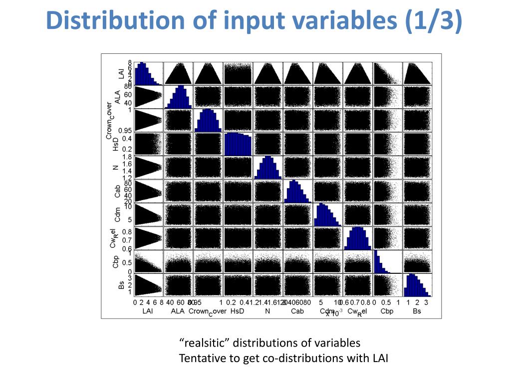 Distribution of input variables (1/3) “realsitic” distributions of variables Tentative to get co-distributions with LAI