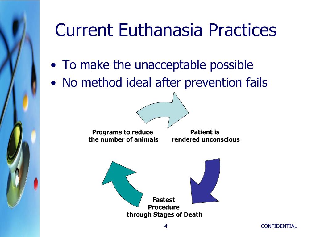 To make the unacceptable possible No method ideal after prevention fails Current Euthanasia Practices CONFIDENTIAL