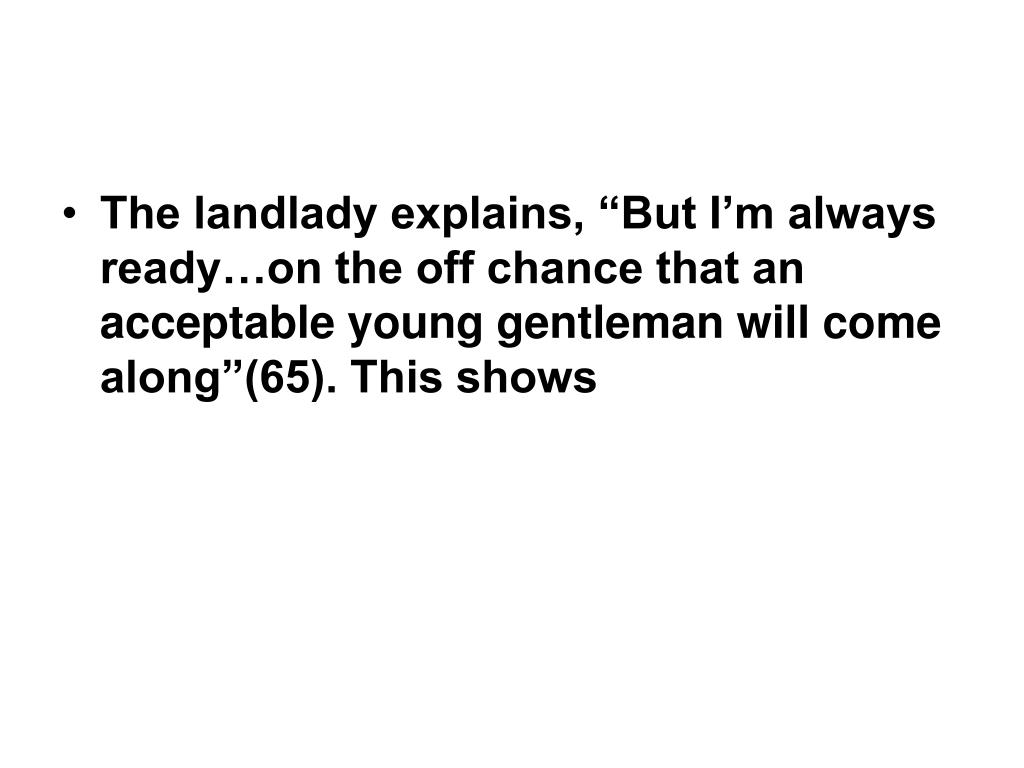 The landlady explains, “But I’m always ready…on the off chance that an acceptable young gentleman will come along”(65). This shows