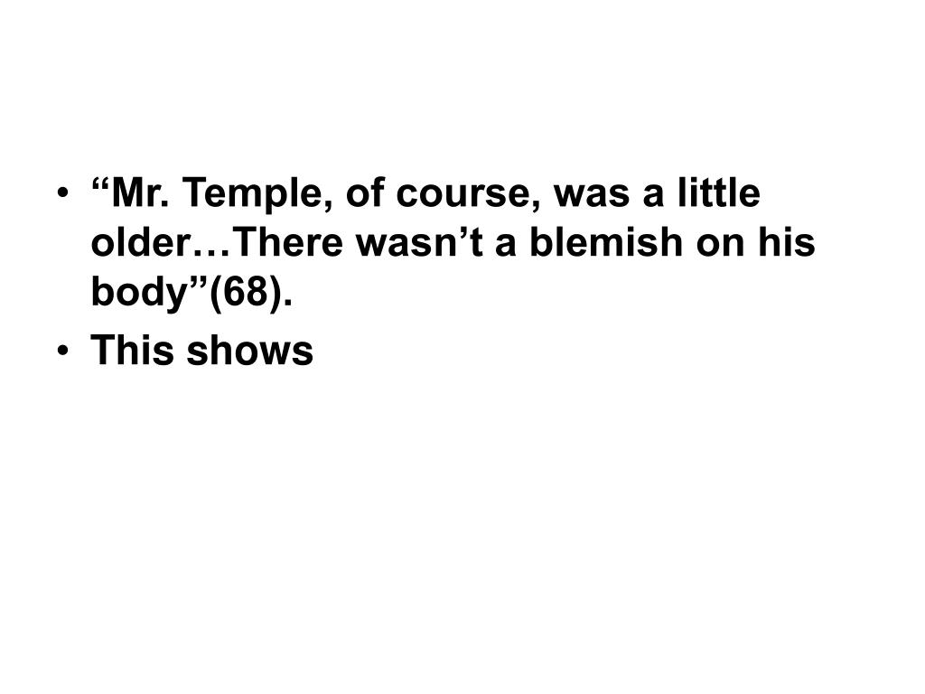 “Mr. Temple, of course, was a little older…There wasn’t a blemish on his body”(68). • This shows